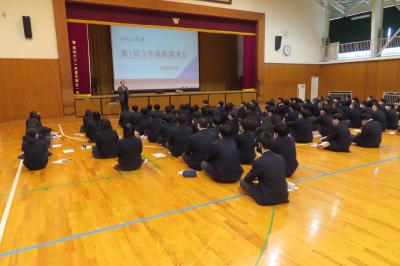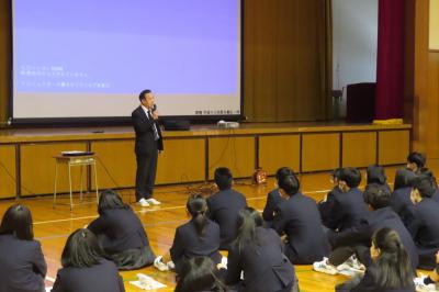 進路指導課長より、希望の進路を実現するための1年間の過ごし方や、書類の提出に関しての注意点などを、