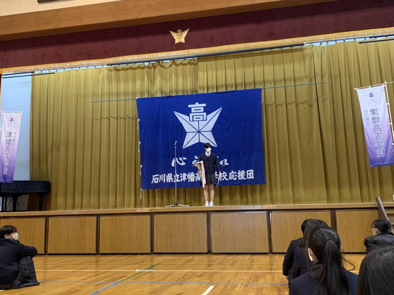 各部の代表が大会の日程や、意気込みを述べた後、生徒会副会長坂井君から、激励の言葉が述べられました。