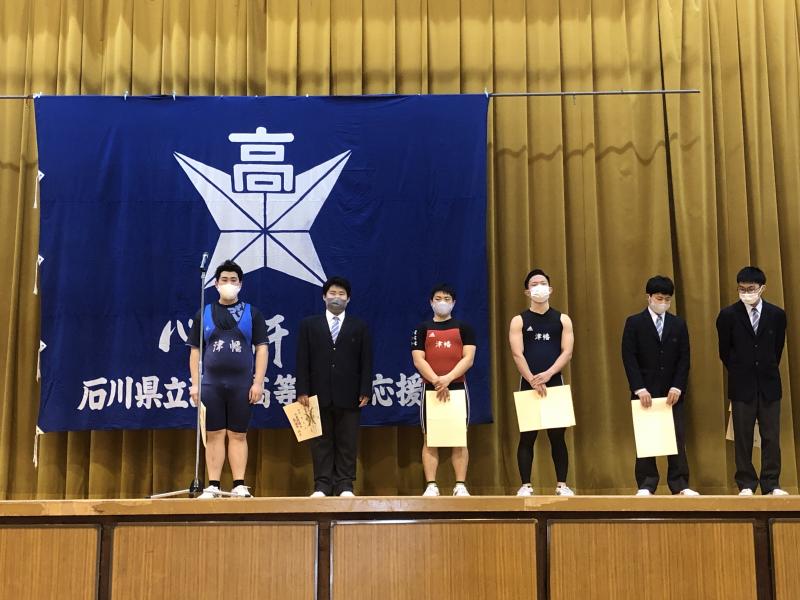 ★令和4年度石川県高等学校総合体育大会で各種目の活躍が評価され、津幡高校が敢闘賞に選ばれました。(写真は、生徒会長 東君)