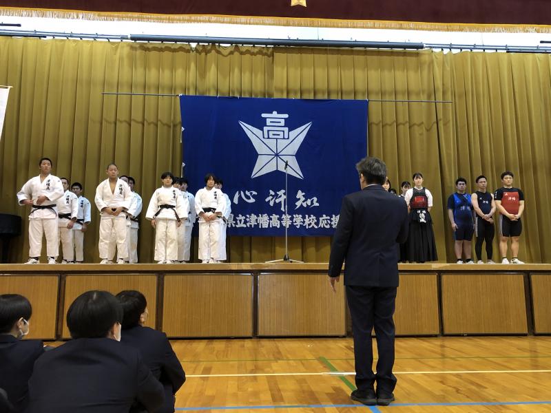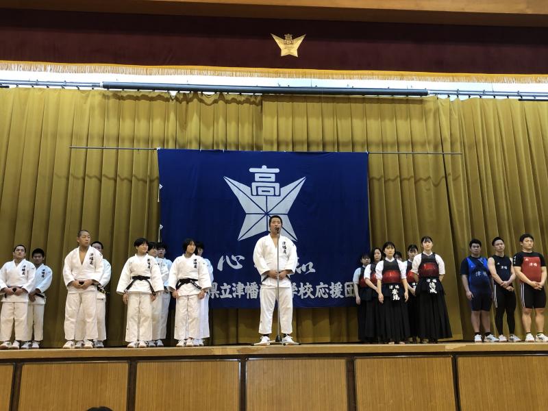 その後、第18回全国高等学校なぎなた選抜大会、第38回全国高等学校ウエイトリフティング選抜大会、第45回 全国高等学校柔道選手権大会に出場する選手のみなさんの壮行式が行われました。