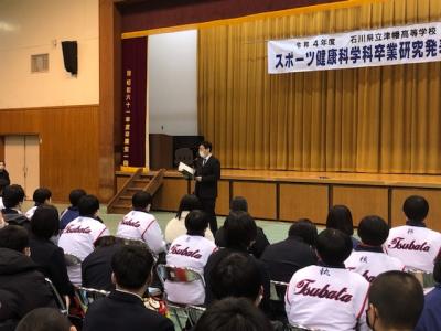 また、1月24日には寺井高校で代表生徒の発表を行いました。