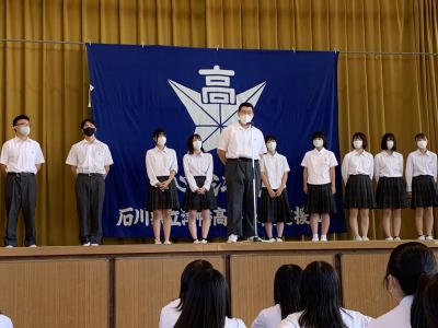 校長先生からは、ほかの大会とは違い石川県チームとして戦うことの醍醐味や、栃木県で開かれる大会の雰囲気を味わいつつ楽しんできてくださいとのエールが送られました。全校生徒・職員一同応援しています。