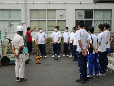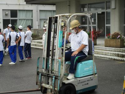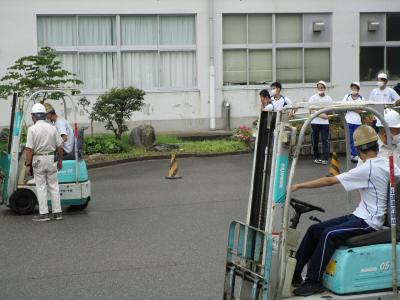 8月25日・26日(木・金)は1・2日の小型特別教育講習に引き続き、3年生対象に「フォークリフト講習会」がありました。3年生18名が講習を受けます。