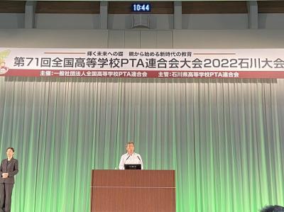 8月25日(木)・26日(金)は、いしかわ総合SCで「第71回全国高等学校PTA連合会大会2022石川大会」が開催されました。運営を各校PTAが行います。