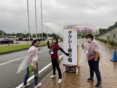 数年前から何回も打合せ会議があり、準備を進めてきました。本校のPTAは前日のレセプション担当でしたが、コロナ禍により急遽「駐車場・タクシー乗り場」を担当することになりました。本校PTAからは、25日は7名、26日は6名の役員の方(2日間とおしの方も)に雨の中ご協力をいただきました。