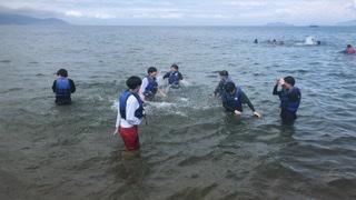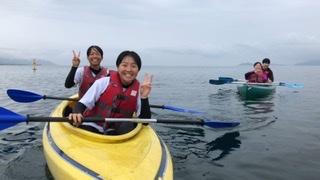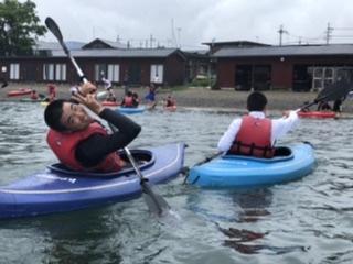 スポーツ健康科学科の3年生が滋賀県大津市にあるBSCウォータースポーツセンターでマリン実習を行なっています。1日目の実習はカヤックでした。