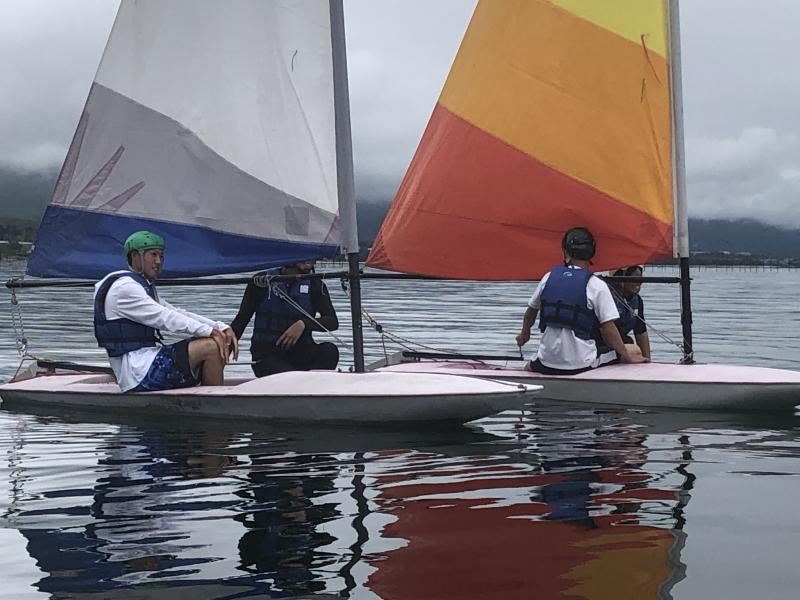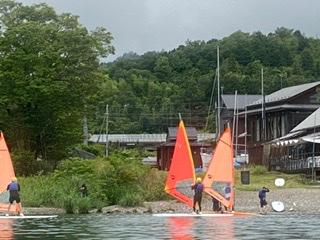 マリン実習2日目は3班に分かれてヨット、ウインドサーフィン、カヤックツアーを行いました。