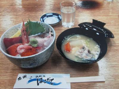 昼は「海鮮家はこだて本店」でいただきます メニューは海鮮丼&石狩鍋です。