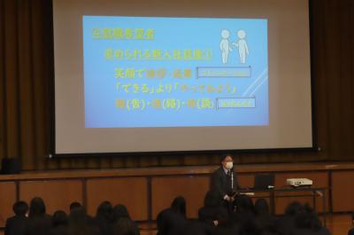 進路指導課長の松本先生より、3年生の進学・就職活動で困らないために、今から取り組んでほしい