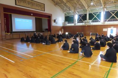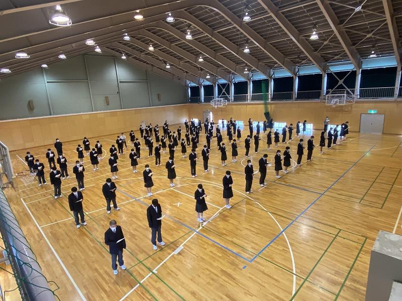 1・2年生は、それぞれ第1体育館と第2体育館に分かれて、十分な間隔を取って活動に取り組みました。