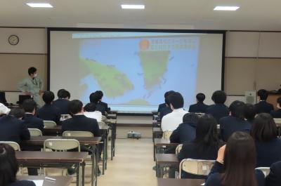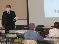 進路指導課の松本先生、鋪村先生より、3年生の進路実現に向けた1年間の流れ、令和3年度卒業生の進路状況、令和4年度の進路展望などについて説明がありました。