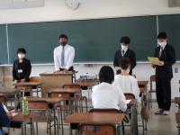 この活動は、授業の始めと終わりの「あいさつ」をしっかり揃えて、良い授業のスタートを切れるようにすることを目的にしています。また、3年生の進路指導の一環として、「語先後礼」を意識することも目的の1つです。