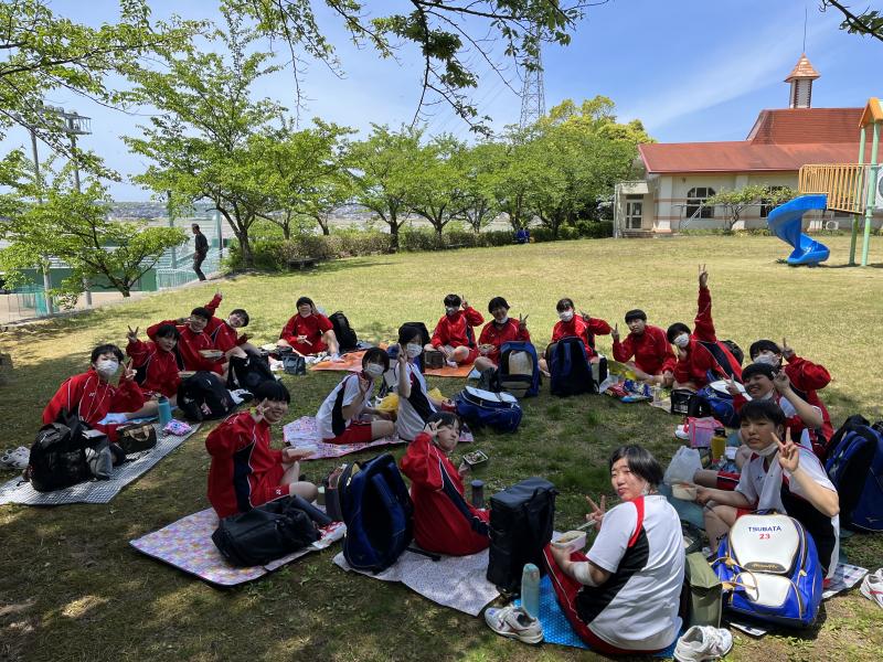 ↑展望台でクラス写真を撮った後に奥の公園で昼食を食べました