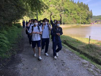 3年生の遠足では、学校から歴史国道を歩いて俱利伽羅不動寺に行ってきました