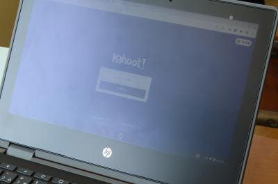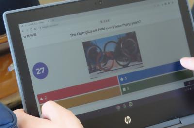 5月7日の英語の授業で、クロームブックを活用して早押しクイズを行っていました。