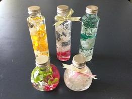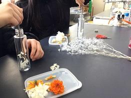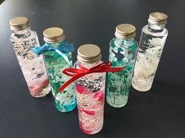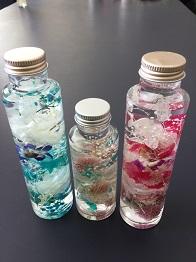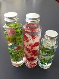 このハーバリウムを授業で作りました。