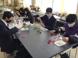 学校では、押し花やドライフラワーを作っているので、これらを用いて作ります。