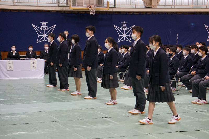 3月10日(木)の校内フリースロー・ダンス大会終了後に、生徒会報告会・壮行式・令和4年度前期生徒会役員選挙を実施しました。細心の注意を払って、生徒と生徒の間隔をできるだけ大きくとって、短時間で行いました。