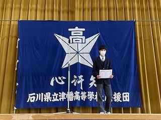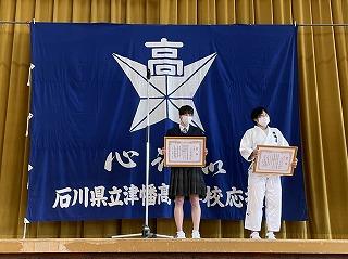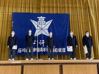 残念ながら立候補者の演説を行うことができませんでしたが、津幡高校のために立候補してくれたという意思が伝わったのか、立候補者紹介の時に拍手が起こっていました。来年度の津幡高校をけん引してくれることを期待しています。