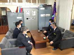 昨日、石川ミリオンスターズ端保聡代表取締役社長と納谷嶺太育成コーチが来校され、山本智秀校長、北橋義仁監督同席のもと、指名のご挨拶をいただきました。