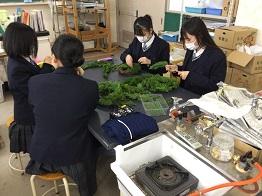 総合学科、フラワーデザインの授業でクリスマスリースを作り始めました‼