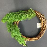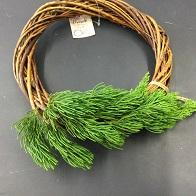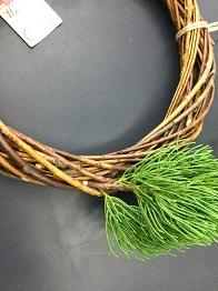 まず、つるを巻いたもの(100円ショップで購入)にカイヅカイブキの枝を差し込んでいきます。