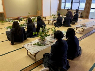 【華道部】 4月15日部活動写真(三年生3人、2年生3人、1年生2人)