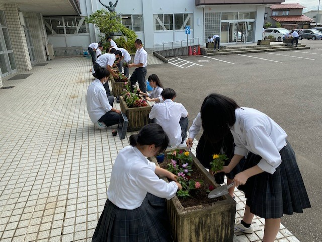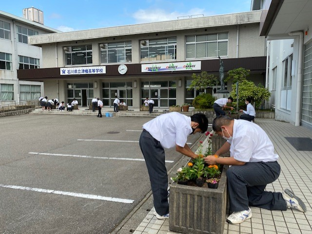 さて、今日の津幡高校ですが、3年生は修学旅行の代替旅行に出発しました。