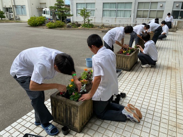 プランターが12個ありますので、2人で一つ、プランターを担当することになりました。