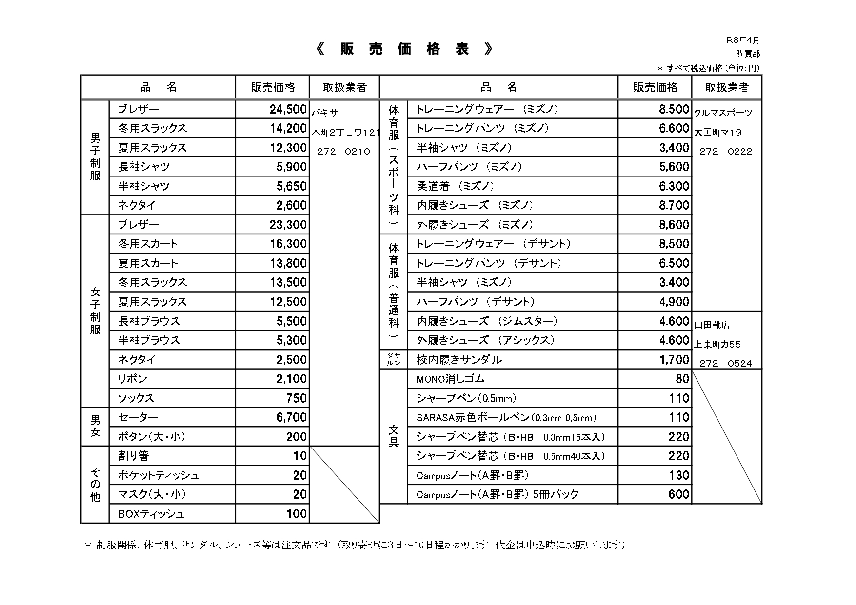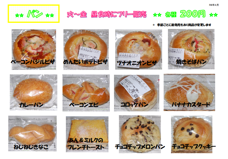 ▶中間・期末考査中は、基本的に購買休業のため販売はありません。