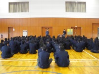 学年末考査最終日の今日、1年生で学年集会が行われました。