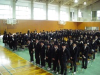 明日の卒業式を控えて午前中は3年生が式の練習、