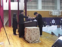 明日の同窓会入会式と明後日の卒業式に向けての最終仕上げです。