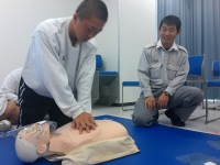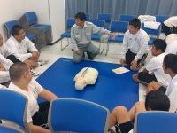 「救命の連鎖」の第1として、心肺蘇生法とAEDの使用法を再度学び、