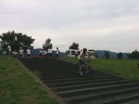 学校近くの河原の階段で段差の昇り降りの練習をしました。