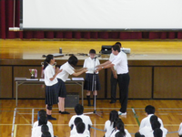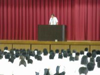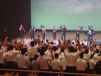 はじめてゴスペルに触れる生徒がほとんどで、「make some noise!」のコールに、思い思いの歓声(レスポンス)を返し、ステージと客席が一体となり、とても盛り上がりました。
