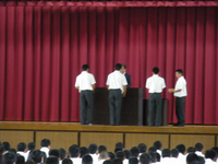 生徒指導からは、「あいさつ」 と 「防犯」 、そして明後日から行われる「鶴翔祭について」のお話がありました。