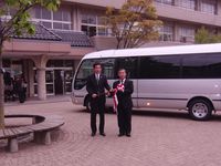 本日、鶴来高校同窓会から昨年の創立70周年を記念してマイクロバスを1台寄贈していただきました。