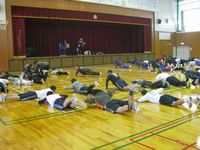 今日の講師は本校陸上部の顧問の先生を迎えて、筋力アップ中心のメニューを行いました。