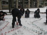 うっすらと雪が積もっている中、生徒玄関前に幻想的なムードを彩ってくれました。