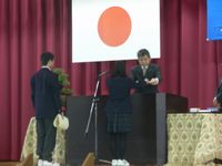 今日は卒業式の予行練習と合わせて、表彰式・記念品贈呈式、同窓会入会式が行われました。