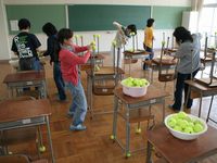 さらに、PTAの方には教室いすの脚にテニスボールの装着作業をしていただきました。