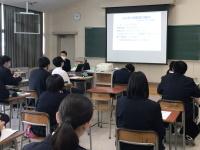 今日はあじさいの郷からデイサービスの主任、大竹さんにお越しいただき3年生の介護福祉選択者を対象に認知症サポータ養成講座を行っていただきました。2年次に一度受講している生徒も数人いましたが、大竹さんの軽快な語り口に引き込まれ、認知症の症状について主体的に学ぶことができました。