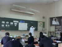 今日は感染症予防についての単元で、養護教諭の友安先生が特別講師として授業をしてくださいました。感染症の種類や感染経路、感染症予防について一通り説明のあった後、実際に手洗い実験をして生徒たちの普段の手洗いでどこに洗い残しが多いか検証しました。きれいに洗ったつもりでも手の甲などに洗い残しが多く、驚いていた様子でした。最後には望ましい換気の仕方についてクイズ形式で説明があり、生徒も楽しんで授業を受けていました。