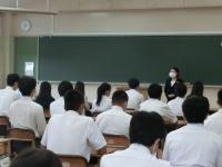 本日6限目、3年生の進学希望者に(株)さんぽうから米澤先生を講師にお迎えし、面接講座が行われました。入退室や挨拶のマナーなど細かいところまで詳しく指導していただきました。わかっていても実際にやってみるとできてない部分もあるので、新たな気づきもあったように思います。進学希望者も早い生徒では来月から試験が始まります。早めに準備してしっかり身に着けていきましょう。
