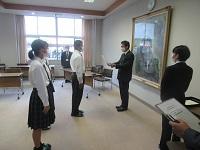 後期生徒会役員任命式 および 前期・後期役員引き継ぎセレモニーが、10月1日(木)手取川歩行のあとに行われました。23kmを完歩した疲れも見せず、制服に着替えてりりしい面持ちで会議室に集合した新旧役員のメンバーたち。