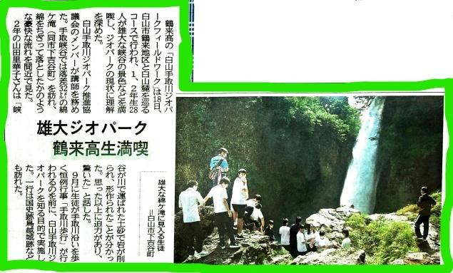 9月には手取川歩行もあり、実際に全校生徒がジオパークを歩きます。