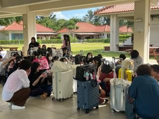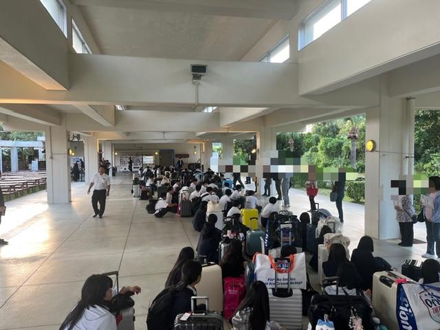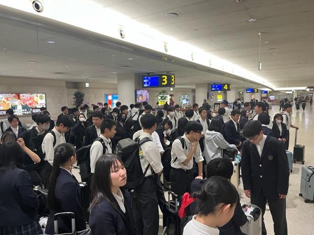 空港に到着し、お昼ご飯を各自食べ、空港では出発までまだかなーと待つ生徒たちでした。