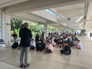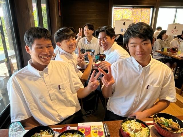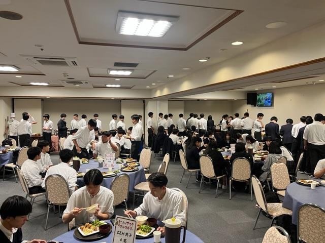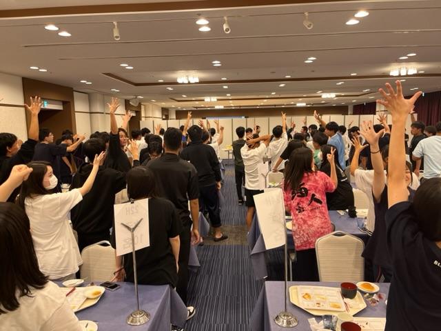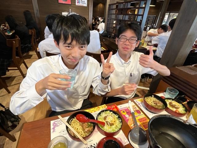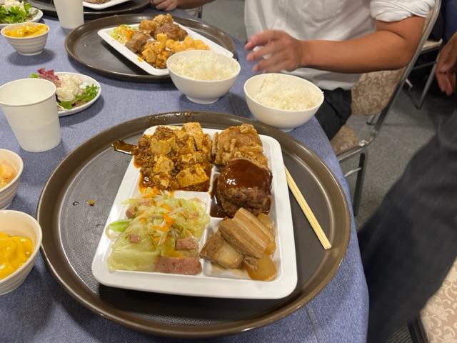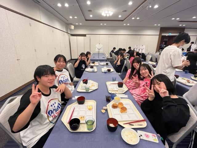 お昼のメニューは、タコライスと沖縄そばです。合掌は23ホーム山本さんがしました。彼も疲れを吹き飛ばす1発芸を披露して、学年の雰囲気を和やかに、明るくしてくれました。