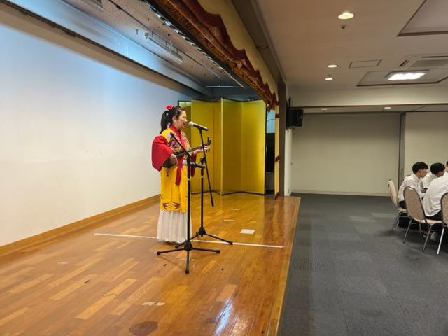 夕食では、歌い手さんの歌に合わせて踊ったり、合いの手をして沖縄の雰囲気を感じ、夕食のビュッフェでは、沖縄の料理を少し堪能できましたね。